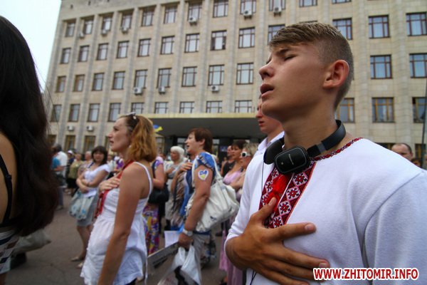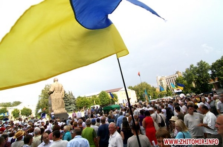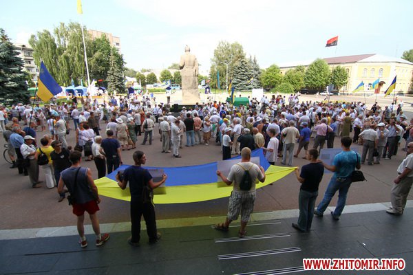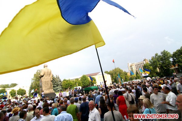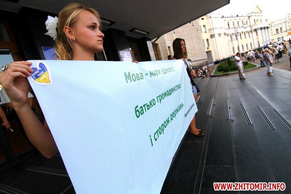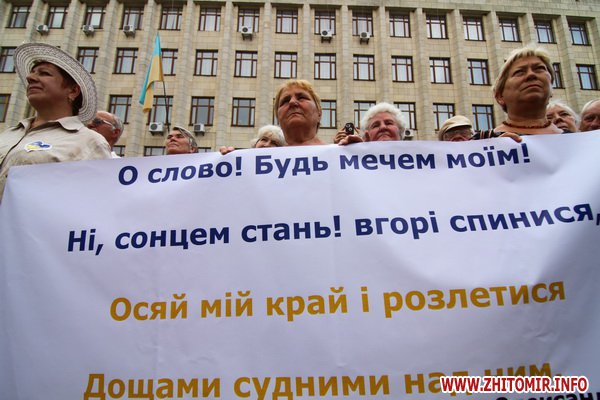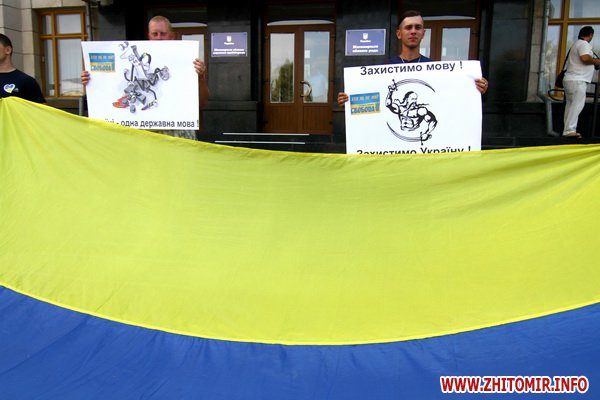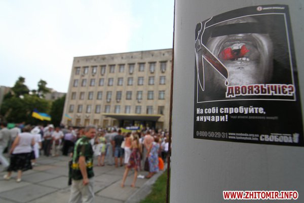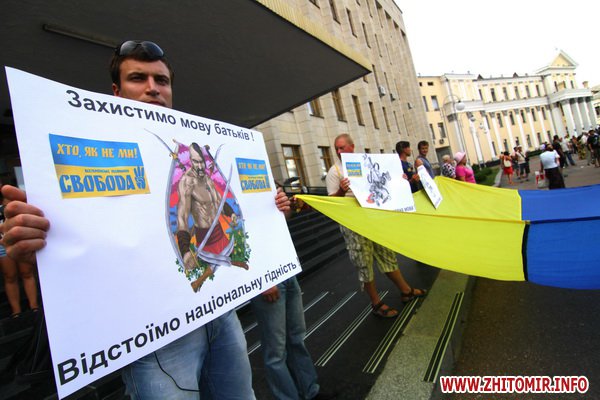 9 июля около 300 человек протестовали у здания Житомирской облгосадминистрации против закона о языковой политике принятия Верховной Радой закона о языковой политике.