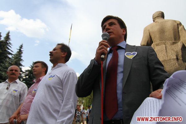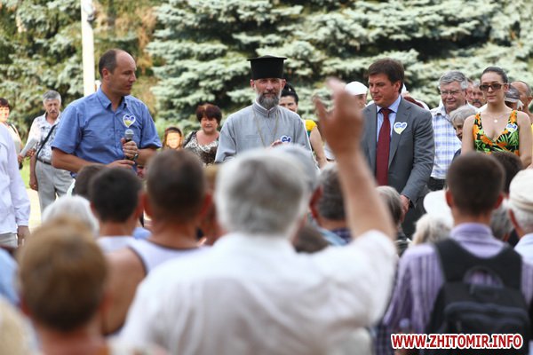 Перед собравшимися выступают депутаты Житомирского облсовета, общественные деятели, преподаватели университетов и духовенство с призывами проводить акции протеста в поддержку украинского языка. Также во время митинга выступил депутат Верховной Рады Украины Андрей Парубий.