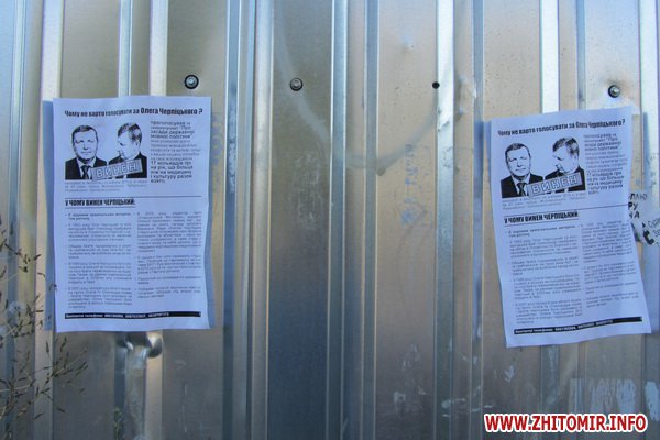 Житомирянам объясняют «Почему не стоит голосовать за Олега Черпицкого?», главная причина – он проголосовал за «языковой» закон.