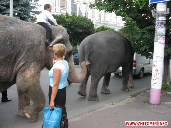 1 августа около 17.00 в Житомире по улице Киевской в сторону площади Соборной шли два слона.