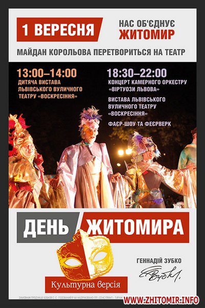 У цьому році культурна версія Дня Житомира відбудеться за ініціативи кандидата в депутати від Об’єднаної опозиції Геннадія Зубка 1 вересня.