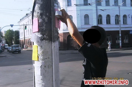 По фактам данных нарушений 14 и 17 сентября составлено 3 протокола на трех человек. С целью обеспечения благоустройства, чистоты и порядка в Житомире, уменьшения количества случаев несанкционированного размещения наружной рекламы и объявлений по городу решение исполкома от 01.02.12. № 54 внедрена компьютерная программа «Автодозвон».