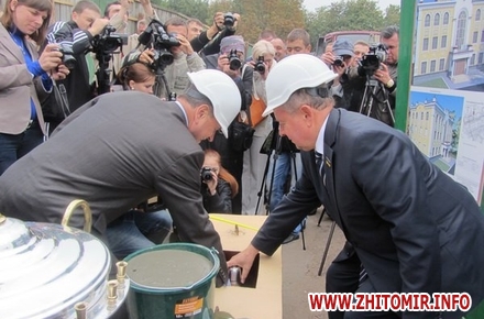«Сьогодні, 21 вересня 2012 року, напередодні 75 річниці створення Житомирської області з Божого благословіння закладено цю капсулу з нагоди початку будівництва музею природи в Житомирі. Історія музею бере початок 10 жовтня 1865 року, коли в будинку губернатора Чорткова була виставлена його колекція з 48 мінералів та гірських порід. Вона стала основою музейного зібрання. Сьогодні цей оберіг природи, як відділ обласного Краєзнавчого музею, налічує 12 тисяч одиниць збереження, має репутацію одного з провідних в Україні, а його колекція одна з кращих історично-природничих зібрань. Він також є центром екологічної освіти області. З 1987 року музей природи діяв у культовому приміщенні. У 2012 році, завдяки зусиллям керівництва області, історичну справедливість відновлено. Православній громаді Житомирської єпархії УПЦ повернуто Хрестовоздвиженський храм, а музей невдовзі отримає нове приміщення. Сьогодні ми закладаємо початок подальшої розбудови музею природи. Через роки, звертаючись до вас, дорогі нащадки, ми передаємо вам свої вітання і прохання достойно продовжити справу, розпочату нами та нашими попередниками, любіть, бережіть і розбудовуйте музей, примножуйте його колекцію, наукові здобутки і добрі справи на радість людям, батьківщині і рідній землі. Від імені громади Житомирщини голова облдержадміністрації Рижук, голова обласної ради Запаловський, працівники культури, краєзнавці, музейні співробітники, громадськість області. 21 вересня 2012 року», - зазначається у посланні.