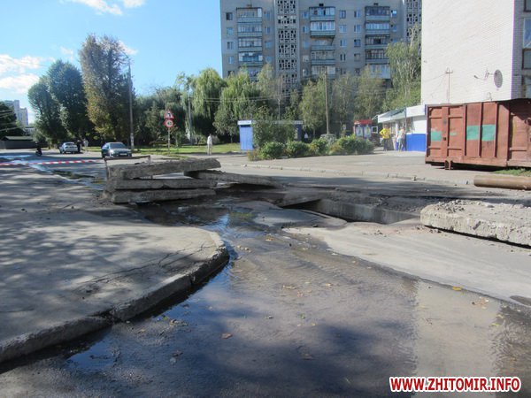 Как сообщал Житомир.info, с 17 сентября на этом участке дороги проводится ремонт теплотрассы. Работники «Житомиртеплокоммунэнерго» обещали завершить работы до конца рабочей недели. Но дорога до сих пор остается разрытой, а движение транспорта по ней ограничено.