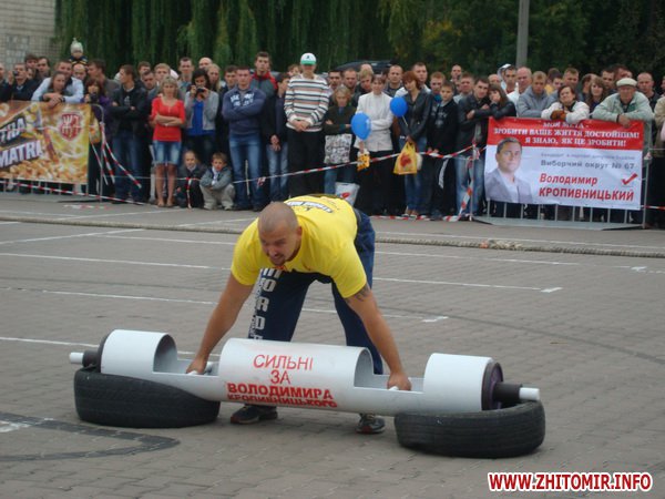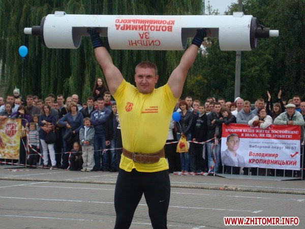 Змагання стронгменів складалось із чотирьох конкурсів. Нагороджували спортсменів партнер турніру Володимир Кропивницький та Василь Вірастюк. Володимир Кропивницький подякував спортсменам за той приклад, який вони подають молоді, і висловив сподівання, що бажання стати такими ж сильними як учасники турніру, забере з вулиці багато житомирян.