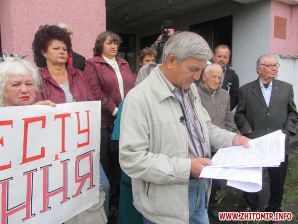 Сергея Рыжука протестующие так и не дождались, к ним приехал заместитель Житомирского губернатора Ярослав Долгих, который сообщил, что вопрос о передачи государственного стратегического объекта в коммунальную собственность не относится к компетенции местной власти, но заверил, что данный вопрос уже решается на уровне Министерства обороны и Министерства соцзащиты.