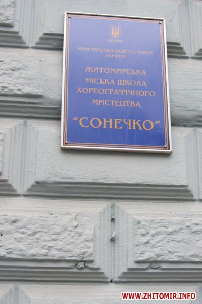 Информация Житомирской мэрии: Житомирская городская школа хореографического искусства «Солнышко» - коммунальное профильное внешкольное учебное заведение, основным направлением деятельности которого – художественно-эстетический, предусматривающий привлечение учеников, воспитанников к активной деятельности по изучению отечественной и мировой культуры и искусства, овладение умениями и навыками в искусстве хореографии, организации содержательного досуга.