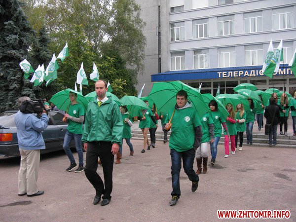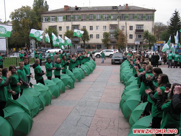 9 жовтня лідер Української партії «Зелена планета» також провів зустріч з житомирянами в залі Телецентру. Перед цим заходом молоді активісти «Зеленої планети» влаштували видовищний «зелений» флеш-моб.