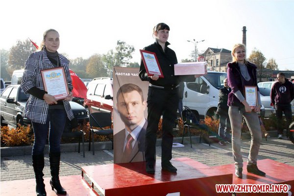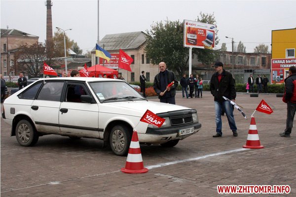 Традиційно, під патронатом партії «УДАР Віталія Кличка», 21 жовтня на майдані ТРЦ «Глобал UA» пройшли змагання з відкритої особистої першості в Житомирській області зі швидкісного фігурного водіння легкового автомобіля. Це було свято спортивного драйву та адреналіну для 28 водіїв-професіоналів та для аматорів. У змаганнях брали участь не лише чоловіки, але й жінки та люди з особливими потребами. Представники партії також із задоволенням взяли участь у перегонах.