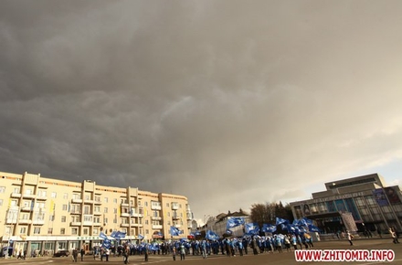 Концерт в поддержку кандидата в депутаты Верховной Рады Сергея Рыжука, который называется "Осень победы" начался в 15 часов на площади Соборной в Житомире.
