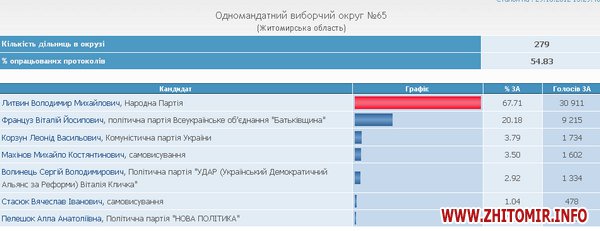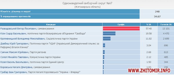 Как сообщал Житомир.info, в Житомире побеждает оппозиционер Зубко, в Коростене - «регионал» Пехов