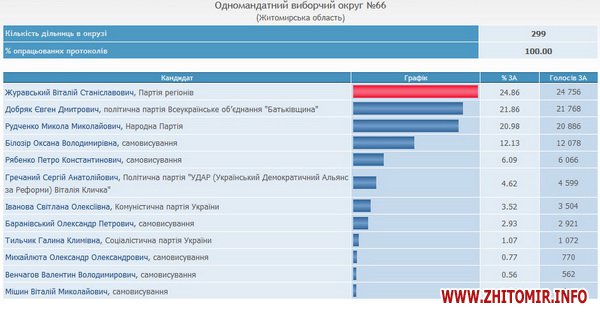 Центризбирком обработал 100% протоколов избирательного округа №66 (Малин, Житомирская область).