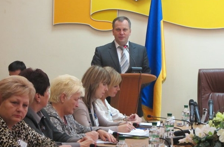 Розпочав засідання мер Житомира Володимир Дебой, який презентував присутнім здобутки міста в розвитку галузі освіти. Міський голова розповів про збільшення видатків на галузь освіти, про проведені ремонти в навчальних закладах та дитячому таборі «Супутник», про запровадження пілотного проекту з енергозбереження в дитячому садочку №21, про стипендії відмінникам та гранти кращим вчителям та педагогічним колективам від міського голови.