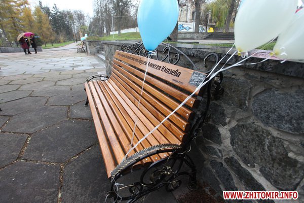 В Парке культуры и отдыха им. Ю. Гагарина открыли аллею именных лавок в Житомире. 9 ноября в городском парке представили две первые лавки на будущей аллее.