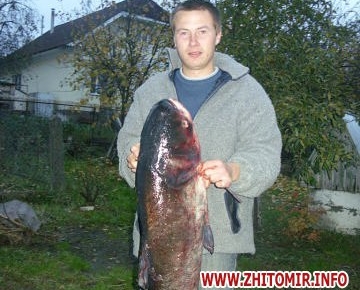 На днях 24-летний житель Малина Вадим Кумаринець поймал в одном из прудов соседнего города Радомышль 16-килограммового толстолобика. Длина пойманной рыбы около метра.