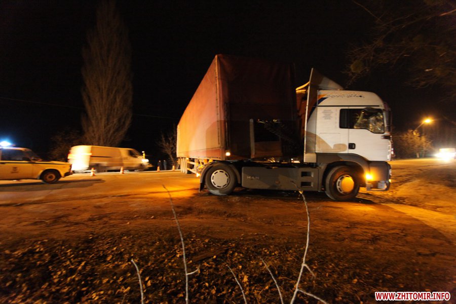 Из-за аварии движение на въезде в Житомир в районе аэропорта было ограничено, MAN с прицепом полностью перегородил одну полосу дороги и прибывшие на место аварии сотрудники ГАИ около 1,5 часа в ручном режиме регулировали движение.