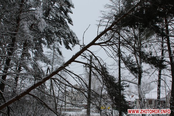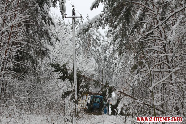 «В связи со сложными погодными условиями были отключения электроэнергии в Северо-Западном районе города – микрорайоны Богуния и Корбутовка. Из-за налипшего мокрого снега и обледенения упавшие деревьев порвали провода линии электропередач. Отключения начались с 16.30 6 декабря, ночью работали две аварийные бригады и спецтехника, сейчас для ликвидации последствий отключений работает 11 бригад. До вечера 7 декабря электроснабжение будет возобновлено», - сообщил представитель Житомирского РЭС.