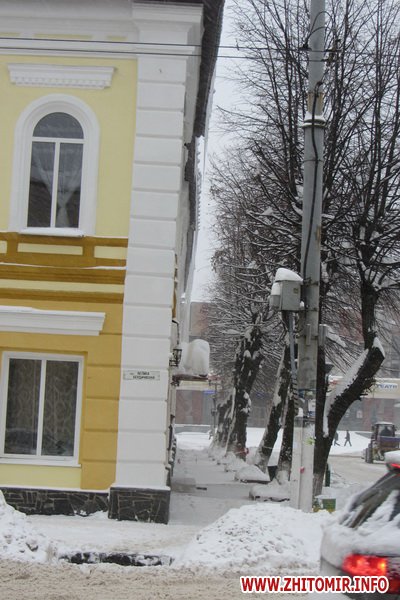Кроме снежной «каши» и льда под ногами житомирянам также следует опасаться громадных сосулек, которые свисают с крыш. В частности, сосульки «украшают» крыши городского Центра творчества детей и молодежи на площади Королева и хореографической школы «Солнышко» на Михайловской.