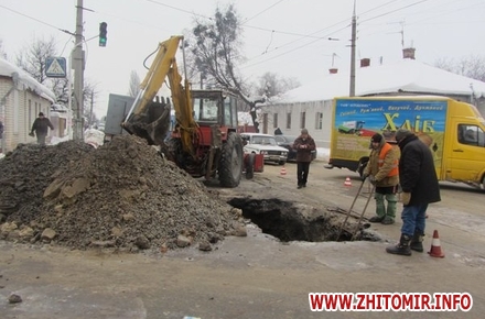 «В Житомире произошло два сложных порыва на 300 мм трубах водопровода. Это связано с оползнями и сложными погодными условиями. Не смотря на сильный мороз, люди работают в усиленном режиме и обещают завершить ремонт в течение дня», - сообщили в пресс-службе КП «Житомирводоканал».