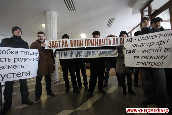 Люди протестуют против решений сессии областного совета, которыми компании «Надра Украины» разрешают добывать ильменитовые руды в Житомирской области.