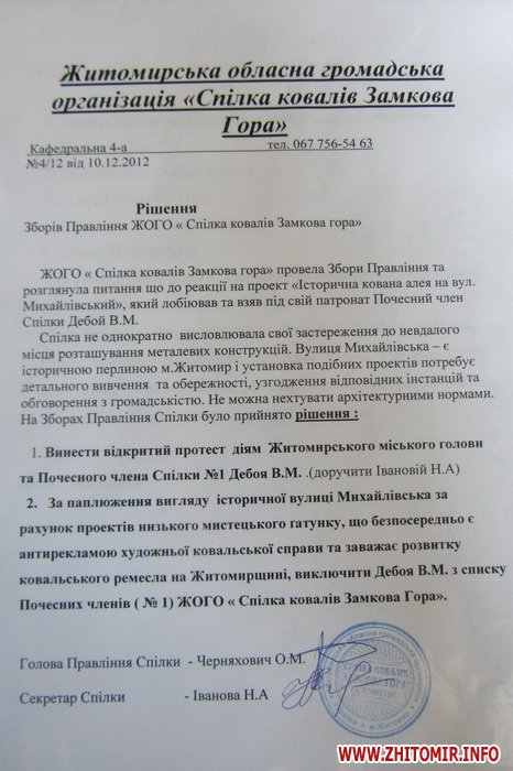 - Мы его приняли после года знакомства, в надежде на то, что будем совместно работать. Это был своеобразный «аванс» на будущее. Но в последнее время мы видим, что кузнечным искусством прикрывают какие-то сомнительные проекты, мы не хотим в этом участвовать. Дебоя исключили из списка почетных членов Союза кузнецов за изуродованный вид исторической улицы Михайловской из-за проектов низкого художественного качества, которые являются антирекламой кузнечного дела.