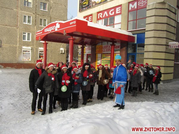 «Початок акції відзначився театралізованим парадом вулицями міста. Весело співаючи пісень, вигукуючи «кричали», маленькі Миколайчики у червоних шапочках дійшли до центральної ялинки міста. По дорозі вони закликали житомирян не бути байдужими та приєднуватися до акції, вітали їх із новорічними святами, дарували дітворі цукерки та кульки», - повідомляє громадська організація.