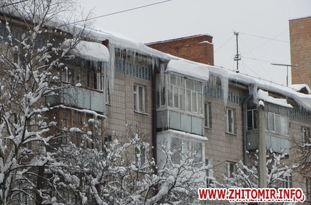 Великі шматки льоду, що звисають з дахів житомирських будинків є реальним джерелом небезпеки. Адже падіння бурульок з дахів може стати причиною пошкодження майна, каліцтва чи навіть смерті людей.