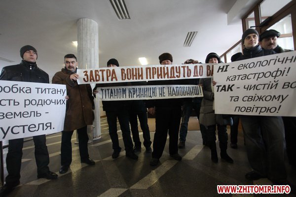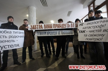 Як повідомляв Житомир.info, 20 грудня минулого року кілька десятків людей протестували проти рішень сесії обласної ради, якими компанії «Надра України» дозволено видобувати ільменітові руди у Житомирській області. Цього ж дня на сесії облради депутати прийняли рішення про створення спеціальної комісії з цього питання.