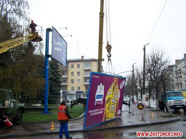 Напомним, в апреле 2012 года возле отеля «Житомир» демонтировали билборды. По словам директора КП «Реклама» Владимира Шуста, причиной демонтажа конструкции стало то, что фирма-владелец билбордов задолжала более 200 тыс. грн.