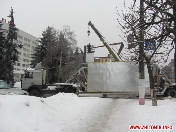 22 января в Житомире на площади Победы возле отеля «Житомир» начали устанавливать новую конструкцию для билбордов.