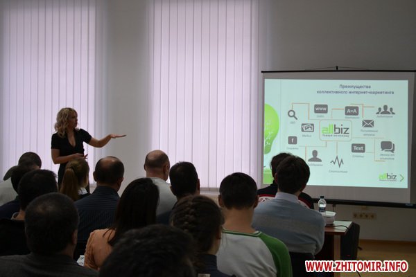 В настоящее время присутствие компании в интернете стало неотъемлемой частью успешного ведения бизнеса. Интернет помогает эффективно использовать время, ресурсы и расширять географию своего бизнеса: кроме непосредственно покупателей, с помощью всемирной сети можно найти также поставщиков или партнеров, выйти на новые рынки сбыта, расширить клиентскую базу и получать больше прибыли при меньших затратах. Об этих и других «премудростях» грамотного использования Интернета рассказала житомирским предпринимателям представитель All.Biz Наталья Мацкевич.