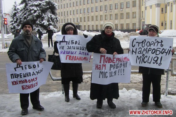 Утром 4 февраля около десяти торговцев цветами с площади Победы пикетировали Житомирский горсовет с требованием вернуть торговые места.