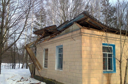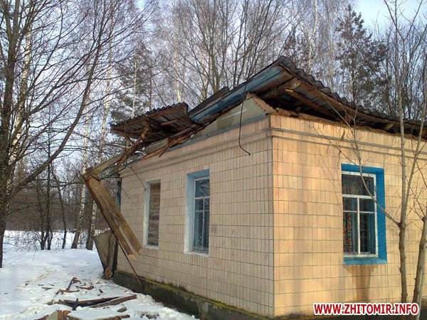6 февраля, около 15:00, в с. Крушники Малинского района в результате снеговой нагрузки разрушено 126 кв. м. шатровой кровли сельского клуба.