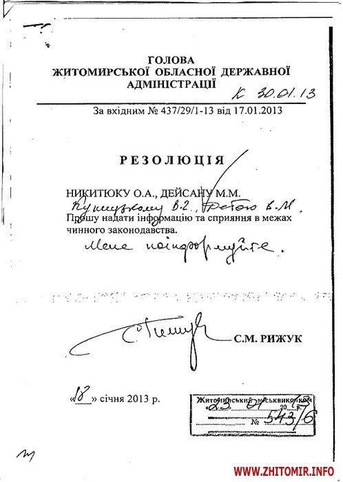 На минулому засіданні міськвиконкому, яке відбулося 6 лютого цього року, міський голова повідомив, що 5 лютого 2013 року Вищим адміністративним судом України (ВАСУ) прийнято рішення, яким скасовано постанову Корольовського райсуду від 7 вересня 2011 року та ухвалу Житомирського апеляційного адміністративного суду від 17 січня 2012 року.