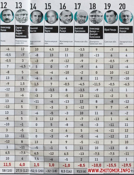 Как сообщал Житомир.info, по итогам 2011 года губернатор Рыжук поднялся в рейтинге с 14 места на шестое.