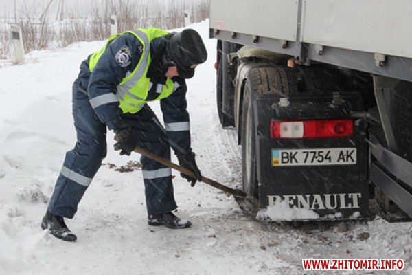 Откопаться из снежной ловушки водителю-дальнобойщику помогли сотрудники Госавтоинспекции. Крупногабаритная фура застряла как раз на подъеме на мост вблизи с.Олиевка Житомирского района, и водителю никак не удавалось сдвинуть ее с места на заснеженной и скользкой дороги.