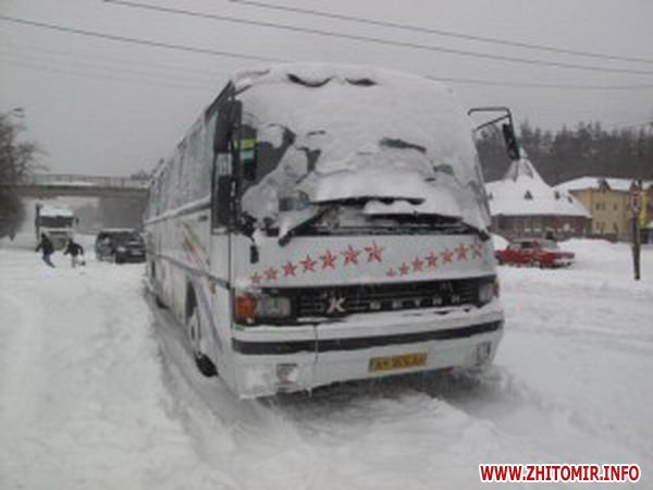 На выезде из Киева в снегу застрял автобус, в салоне которого находилось 47 школьников из Житомирской области.