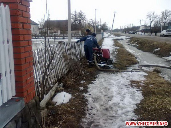 1 квітня до ДСНС в Житомирській області надійшло 20 повідомлень про підтоплення приватних господарств. Інтенсивне танення снігу призвело до наповнення водою низових ділянок місцевості. Вода затопила городи та двори садиб, які розташовані в низинах.