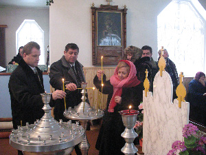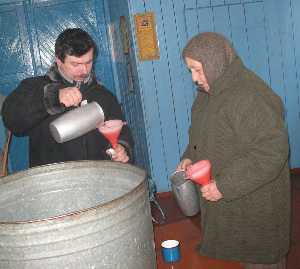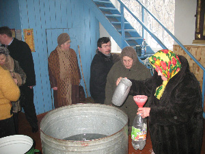В Преображенской церкви села Гальчин Анрушовского района Житомирской области люди в день праздника Водохреща берут в церкви освященную воду.