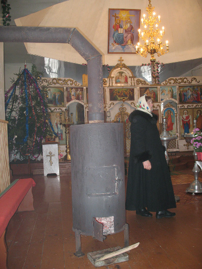 Отапливается церковь железной печкой-буржуйкой.