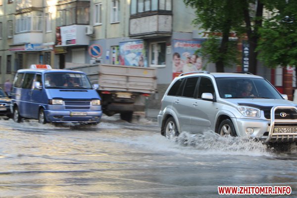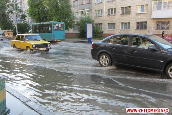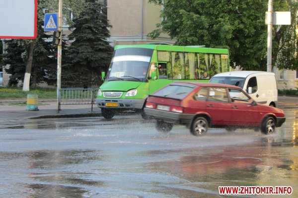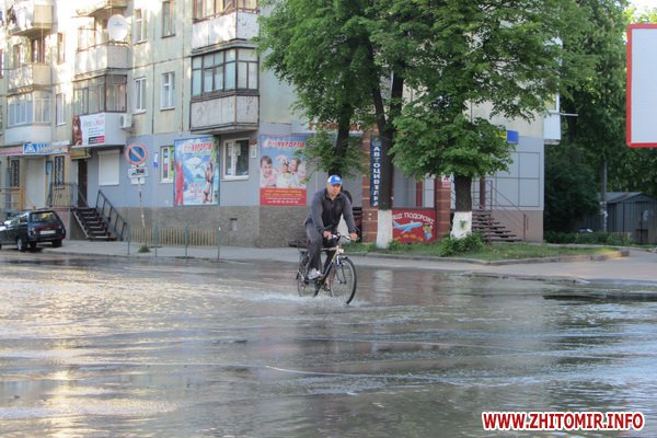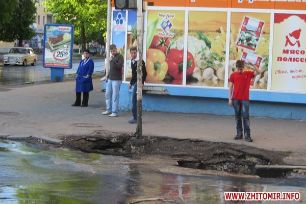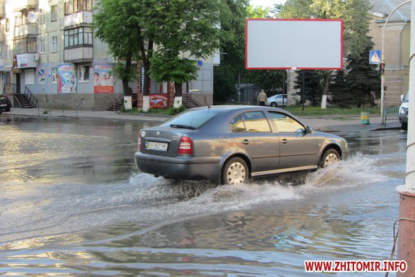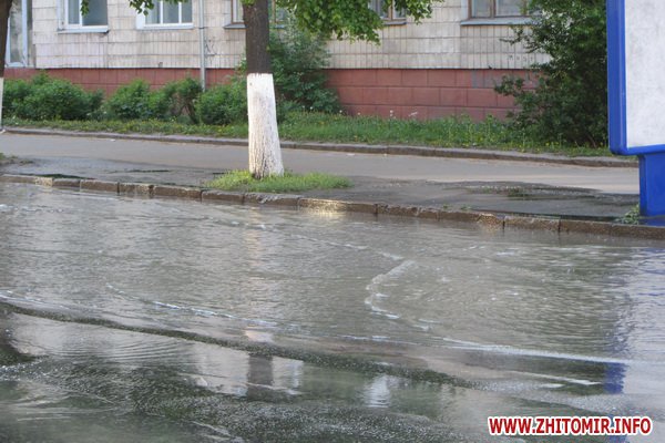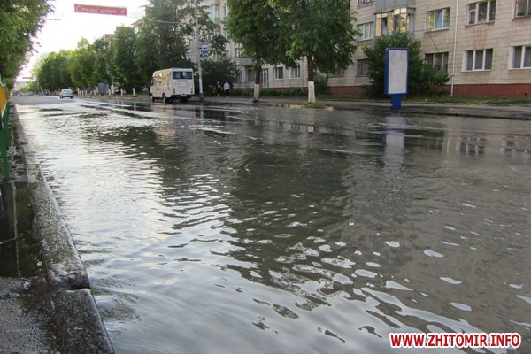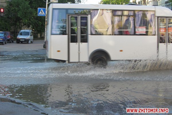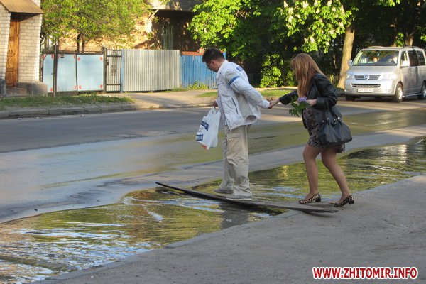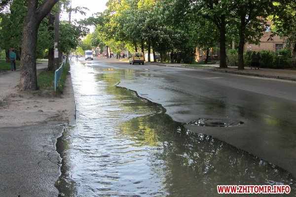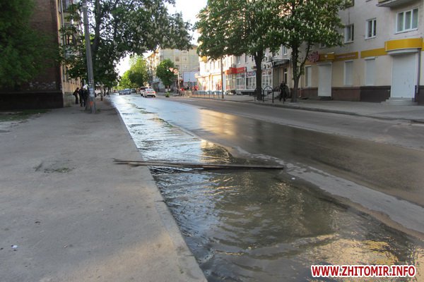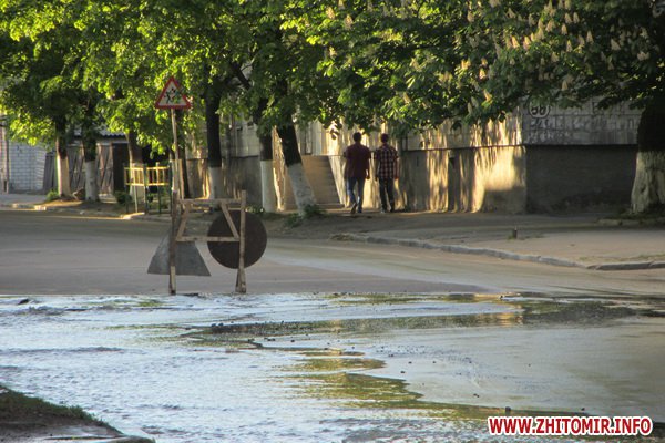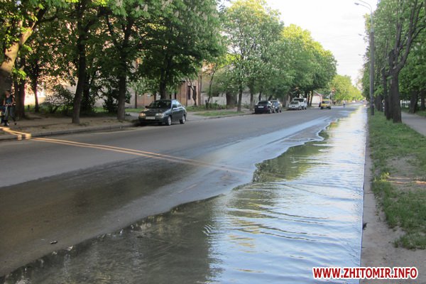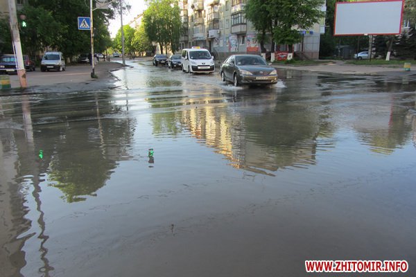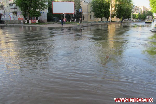 5 мая в Житомире появился перекресток, который нельзя перейти – из-за прорыва водопровода проезжая часть залита водой.