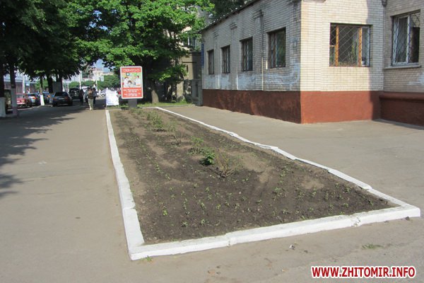 Тогда же директор КП «Зеленбуд» говорил, что из 200 кустов роз половину высадили на двух клумбах возле Дома правосудия и половину на двух клумбах по Большой Бердичевской: «Мы сделали принцип плотной посадки, это будет красиво, поле роз».