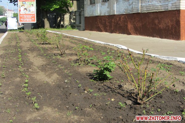 Возле городского управления образования на ул.Большая Бердичевская от «поля роз», в посадке которого принимал участие мэр Житомира, остались отдельные кусты.