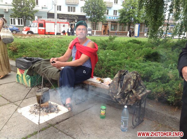 23 травня, близько 18.00, в Житомирі на площі ім. С. П. Корольова, біля будинку обласної ради, чоловік, який називає себе Миколою, розпалив багаття, щоб зварити собі чаю.