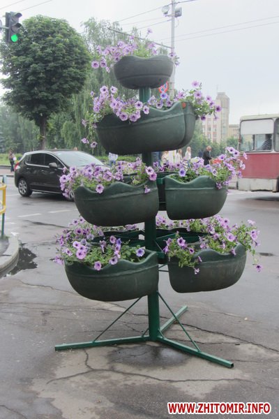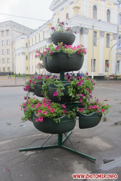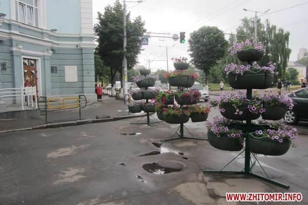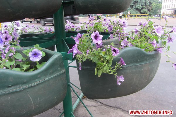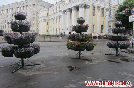 На восстановление стоек с цветами возле здания Житомирской мэрии на ул.Михайловская потратили более 5 тысяч гривен.