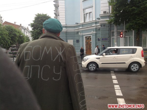 Другий день поспіль, з 23 травня, у центрі Житомира під вікнами мерії та облдержадміністрації живе колишній прикордонник.
