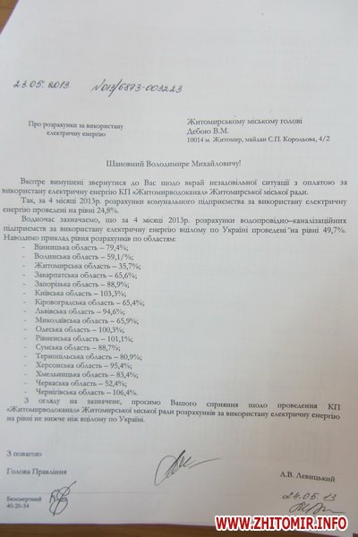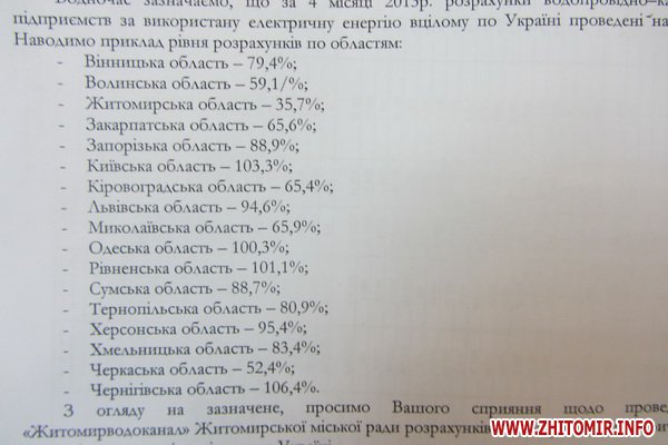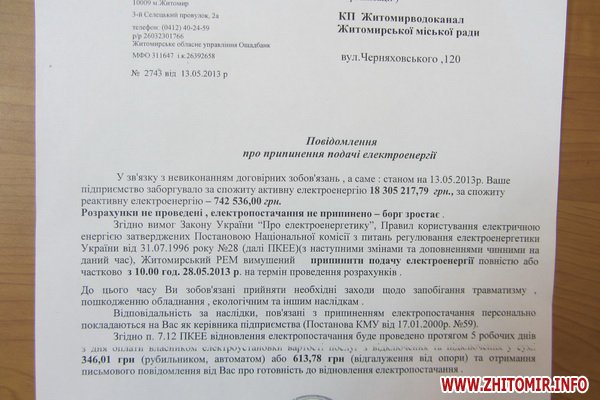 После заседания комиссии Самчук показал Житомир.info письма-предупреждения от облэнерго об отключении воды.