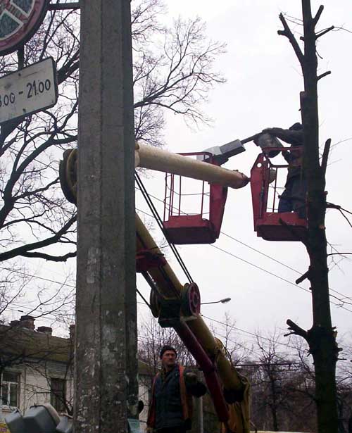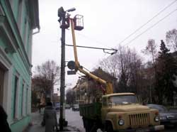 Сейчас сотрудники «Міськсвітла» занимаются монтированием электроосвещения четной стороны улицы Большой Бердичевской, в прошлом году они здесь реконструировали нечетную.