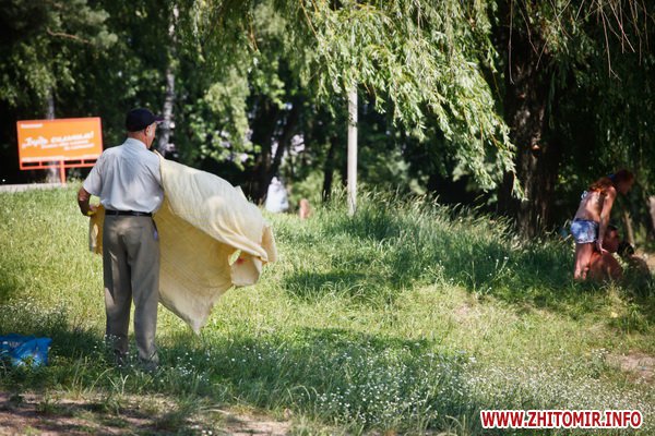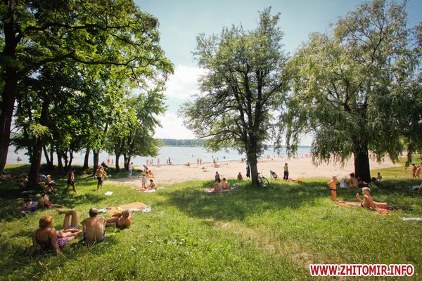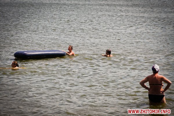 В Житомирском гидропарке, что на Корбутовке, купальный сезон в разгаре. Не смотря на будний день на обоих пляжах гидропарка людей достаточно много.