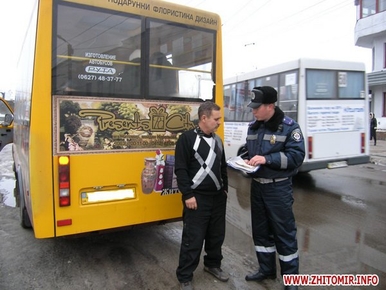 Протягом поточного року працівники Державтоінспекції в Житомирській області проводили роботу з попередження аварійності на пасажирському транспорті, підвищення дисципліни водіїв і контролю за технічним станом автобусів. За вказаний період в автогосподарствах області було проведено 455 перевірок, у тому числі 86 обстежень, 237 цільових і 132 контрольну перевірку. При цьому 484 автобусів із 2968 оглянутих експлуатувалися з різними технічними несправностями: 69 одиниці були допущені до перевезення з несправним рульовим керуванням, 65 – із несправностями гальмівної системи, 54 – із заблокованими аварійними виходами та 31 були переобладнані без належного дозволу Державтоінспекції.